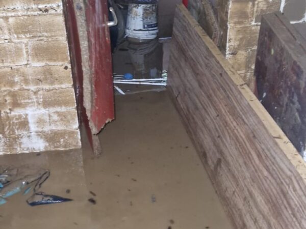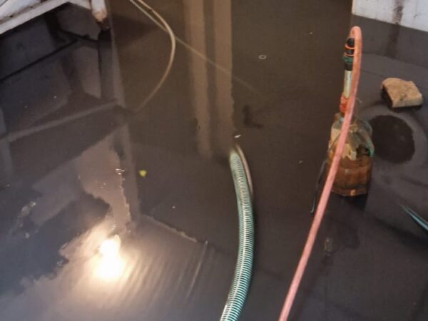 Die Kirchheider Straße in Bad Salzuflen ist nach dem Starkregen gleich an mehreren Stellen überflutet. Die Feuerwehr Bad Salzuflen ist mit vereinten Kräften vor Ort